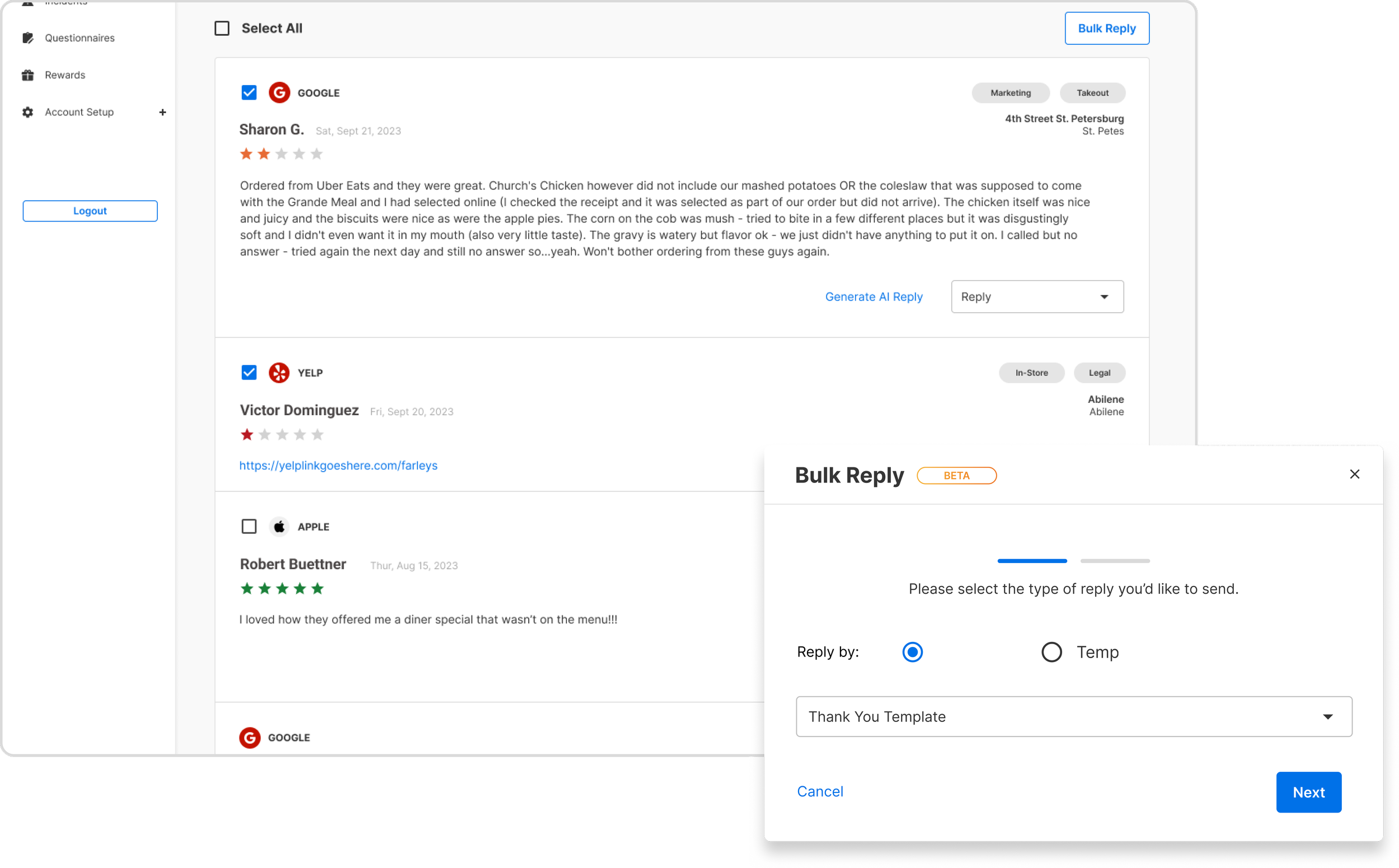 Integrated with Chatmeter, allowing restaurants to manage and respond to all survey and social reviews in 1 platform