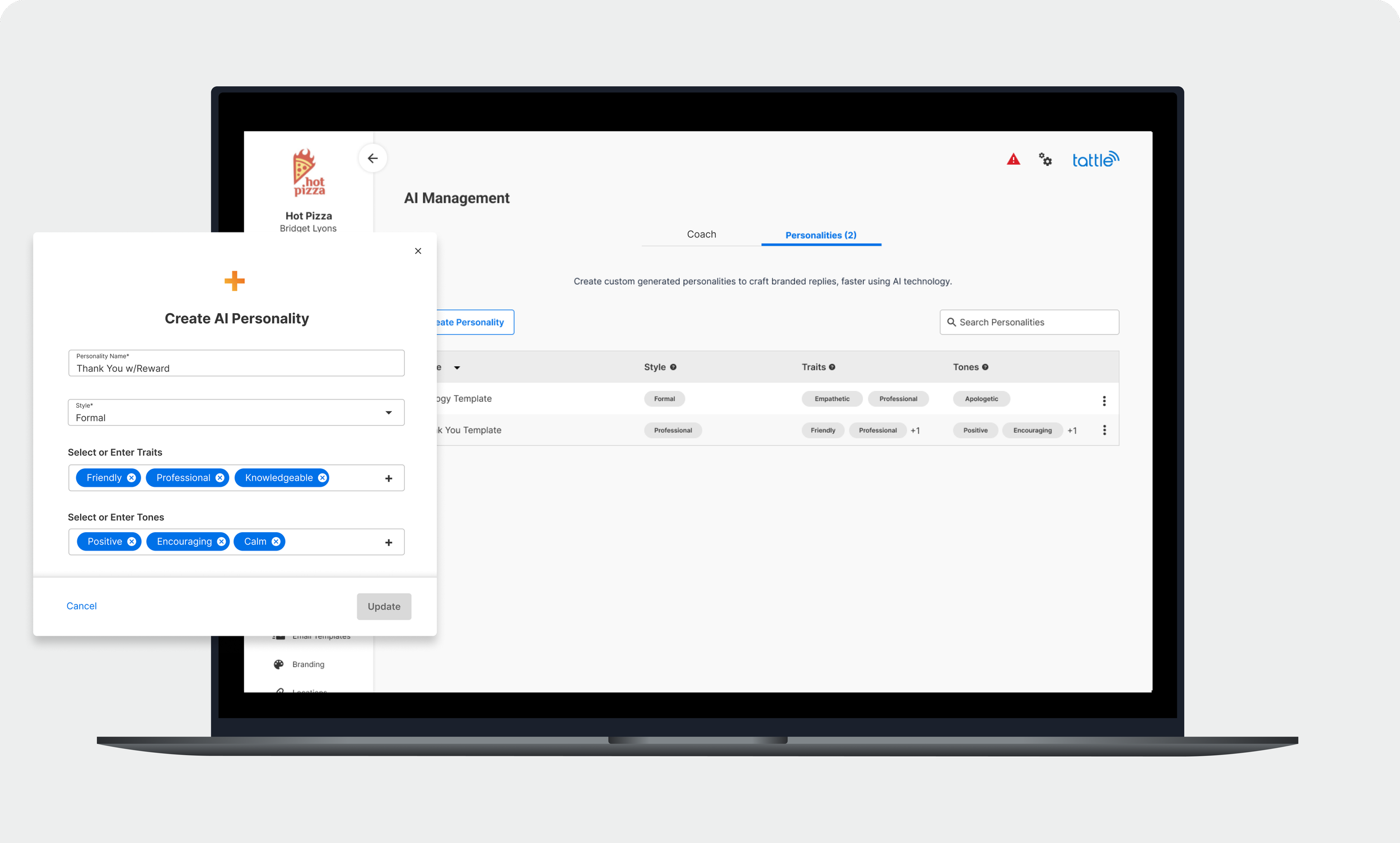 AI Personalities: Enables District Managers to train AI on their brand’s unique voice using predefined attributes, styles, traits, and tone, ensuring tailored responses and interactions that align with the brand’s identity.