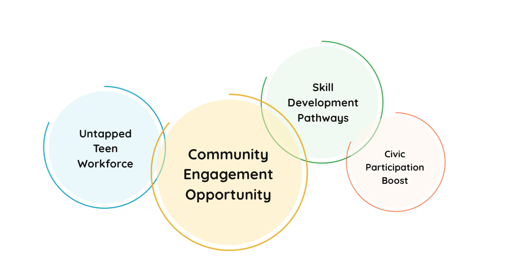 Teens often struggle to find meaningful local service opportunities, while communities lack a trusted way to connect with them. This gap limits teens’ ability to contribute and grow while weakening community bonds.